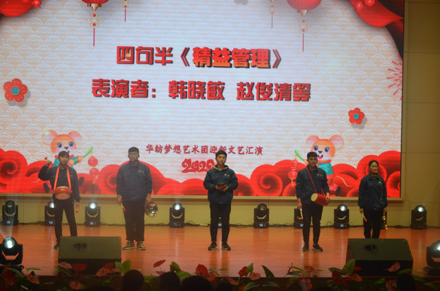 1月4日,繼公司舉行持續(xù)深化精益生產(chǎn)年度總結動員大會之后,精彩紛呈的“同心筑夢·贏戰(zhàn)2020——華紡夢想藝術團迎新文藝匯演”與廣大員工見面。整場文藝匯演洋溢著吉祥喜慶的氣氛,充盈著昂揚向上的旋律,展現(xiàn)出華紡人樂觀、奮進的精神風貌。