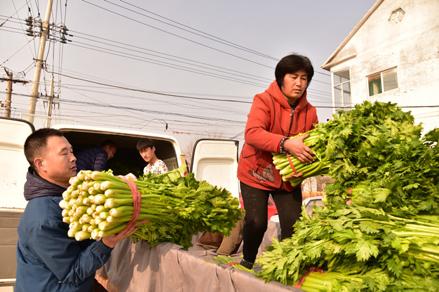 圖為公司在大龐村購買“愛心芹菜”的情形