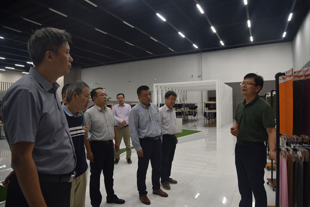 周志茂一行先后參觀了公司綜合辦公區、服裝面料展廳、花布展廳、家紡展廳、創意設計中心、工程技術研究院、智云中心,聽取了盛守祥對公司推動智能化發展以及新舊動能轉換等方面的情況介紹。周志茂一行對公司的智能化發展給予了充分肯定,并就公司新舊動能轉換進行了深入交流,提出了寶貴意見及建議。