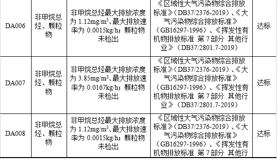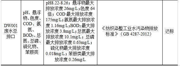 根據華紡股份有限公司自行檢測報告可知,廠區現有項目污染物排放情況見表2。