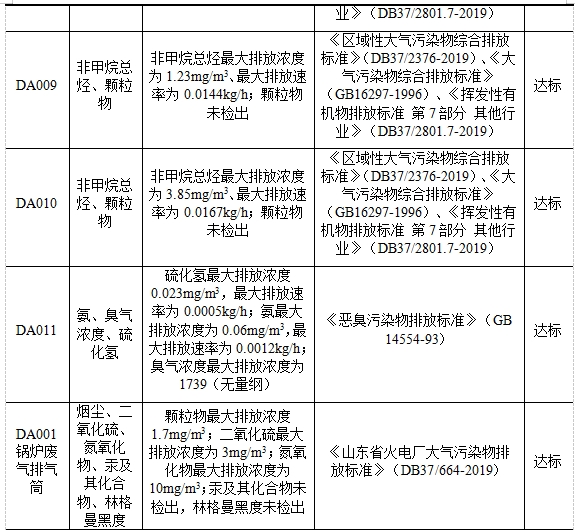 注:①排氣筒編號來自排污許可證對排氣筒的編號;