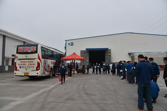 獻血隊伍中,既有工作多年的老同志,也有剛剛參加工作的新員工。獻血車就位后,員工在濱州市中心血站工作人員的指導下,認真填寫獻血登記表、測量血壓、抽血化驗,經血液檢驗合格后開始獻血。“我參加無償獻血的初衷,就是想盡自己的一點力量。”在場參與獻血的一名員工說到。簡單的一句話,展現的卻是充滿溫暖情感的無私之愛。