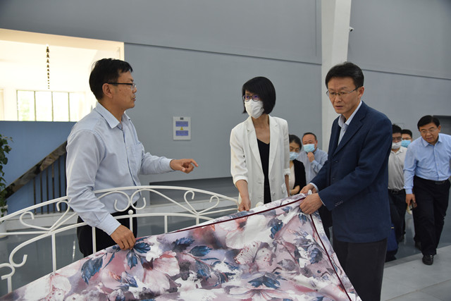 調研組一行先后到公司智云中心、檢測中心、綜合辦公區、服裝面料展廳、花布展廳、家紡展廳、創意設計中心、工程技術研究院、花布車間生產現場等實地調研,詳細了解了企業運行、市場營銷、科技創新、戰略規劃等情況,詢問企業發展過程中遇到的問題和困難,并聽取了公司董事長盛守祥對公司總體生產經營情況的匯報。調研組對公司多年來的發展成績給予了充分肯定,并表示華紡公司多年來深耕紡織印染領域,不斷做大做強、是一家高質量發展、成長性良好的企業;同時,企業在發展的過程中積極履行社會責任,體現了企業的社會擔當。