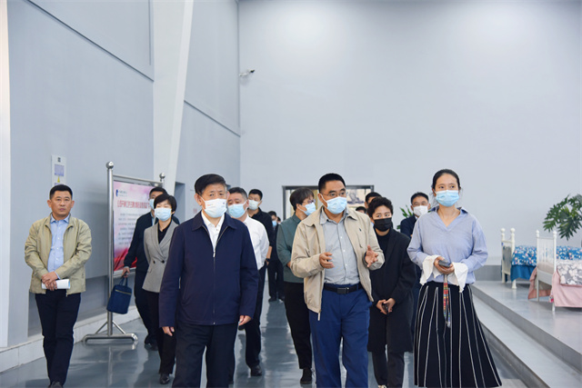 楊菡一行首先參觀了公司智云中心、服裝面料公司、花布公司、家紡公司、創意中心、工程技術研究院等,盛守祥向楊菡一行介紹了公司整體發展、智能制造、轉型升級等情況。