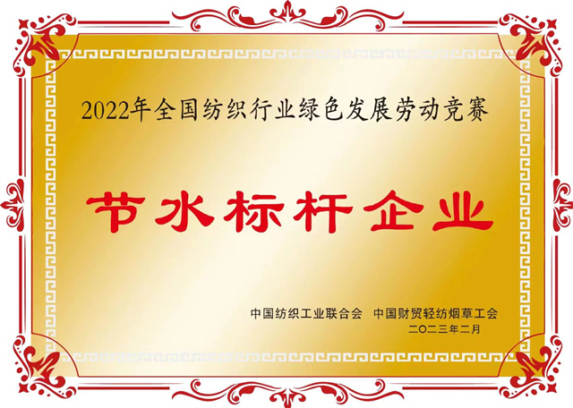 為大力弘揚勞模精神、勞動精神、工匠精神,組織引導廣大職工為推動紡織行業綠色低碳循環發展貢獻智慧和力量。2022年,中國紡織工業聯合會與中國財貿輕紡煙草工會組織開展了涉及節水增效、節能降碳兩個領域的全國紡織行業綠色發展勞動競賽。在近日公布的競賽結果的通報中,公司獲評“節水標桿企業”榮譽稱號、公司系統工程部能源副總工于濤榮獲“節水增效先進個人”榮譽稱號。