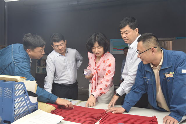 隨后,考核組聽取了面料車間技術主管王魯剛個人情況匯報,與王魯剛同事談話,并前往王魯剛工作現場進行實地考察。實地考察結束后,考察組對公司創新工作開展情況給予了充分肯定和高度評價,并對公司依托勞模創新工作室調動職工創新積極性、為企業發展注入活力等工作給予肯定。