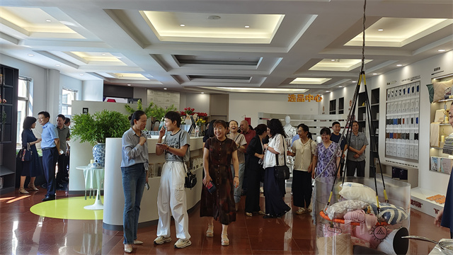 在華紡股份黨委書記、董事長盛守祥的帶領(lǐng)下,大家來到華紡老廠區(qū),那里陳列著一幅幅彌足珍貴的歷史照片,它們鐫刻著大家共同奮斗的往昔歲月。在這些影像前,老員工們的思緒仿佛瞬間被拉回到那激情澎湃的年代,熟悉的面容、難忘的瞬間,一一重現(xiàn)眼前,喚起了無數(shù)美好回憶。緊接著,大家又來到華紡股份新廠區(qū),參觀了智云中心、檢測中心、綜合辦公區(qū)、服裝面料公司、花布公司、家紡公司、創(chuàng)意中心、工程技術(shù)研究院等區(qū)域。每一步腳印,皆見證著公司的歷史演進;每一處細節(jié),皆彰顯出公司對技術(shù)創(chuàng)新與產(chǎn)品升級的執(zhí)著追求。