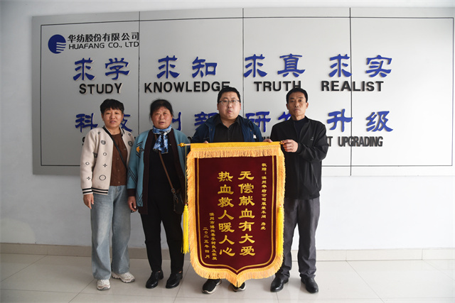 4月8日,服裝車(chē)間員工房虎收到了一面飽含深情的錦旗,上面寫(xiě)著“無(wú)償獻(xiàn)血有大愛(ài),熱血救人暖人心”。這面錦旗不僅是對(duì)房虎長(zhǎng)期堅(jiān)持無(wú)償獻(xiàn)血善舉的高度認(rèn)可,更彰顯了華紡人熱心公益、奉獻(xiàn)社會(huì)的精神風(fēng)貌。