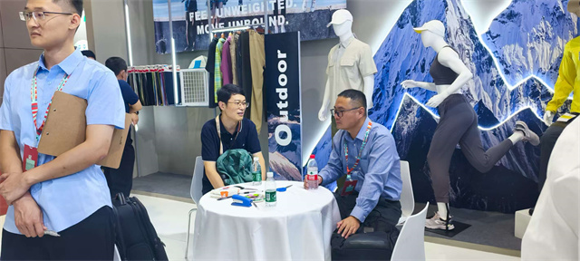 本次參展,公司集中呈現(xiàn)了涵蓋服裝、高端功能性面料、家紡成品、航空文創(chuàng)聯(lián)名SKYKITS服裝與床品等多類產(chǎn)品,全面展示了公司在產(chǎn)品研發(fā)與工藝創(chuàng)新方面的深厚積累。展位現(xiàn)場吸引了大量海內(nèi)外客商駐足交流,氣氛熱烈。來自全球的多家采購商和品牌代表與公司團隊進行了深入洽談,并表現(xiàn)出積極的合作意向。