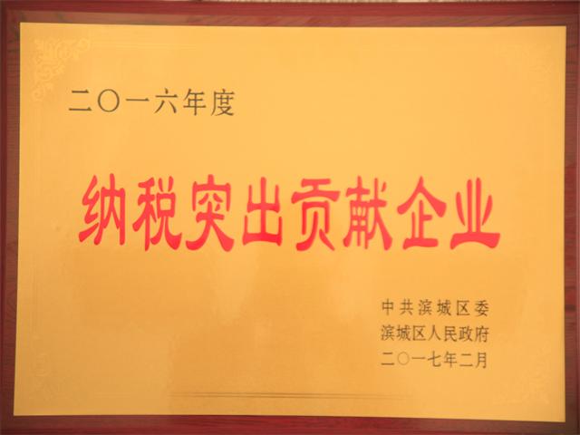 日前,中共濱城區委、濱城區政府公開表彰了濱城區2016年度納稅貢獻企業(單位)。公司以在守法經營、推進發展、依法納稅等方面的良好表現,被授予“2016年度納稅突出貢獻企業”稱號。