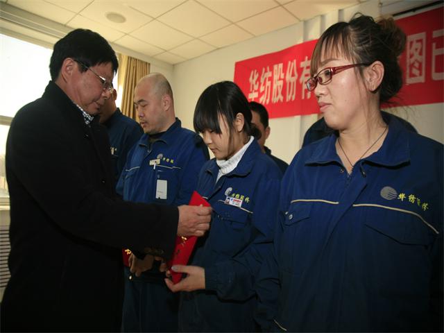 會上,總工程師羅維新代表公司宣讀表彰決定和準予結業的通報,并為29名獲得一、二、三等獎的優秀技術人員頒發了榮譽證書;總經理閆英山為2個優秀團隊頒發了獎狀,為染整專業技術培訓班第二期成績合格的24名技術人員頒發了結業證書;東華大學教授、華紡工程技術研究院院長毛志平為參加第三期脫產培訓的技術人員發放了學習教材。優秀輪訓結業學員代表、化工公司技術員尚高陽發言,優秀技術人員代表、家紡車間技術員萬興江先后發言。會議由技術中心副主任李春光主持,并做2016年度技術工作總結;工程技術研究院副主任孫紅玉代表研究院做工作總結。
