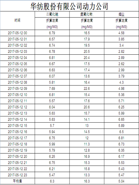 煙氣排放數據信息公開2017.5.12數據
