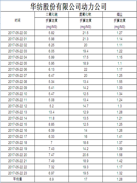 煙氣排放數據信息公開2017.5.22數據