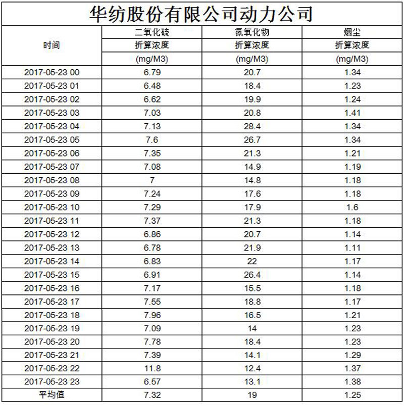 煙氣排放數據信息公開2017.5.23數據