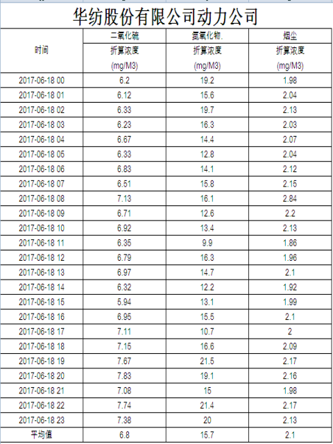 煙氣排放數據信息公開2017.6.18數據