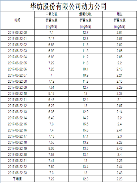 煙氣排放數據信息公開2017.6.22數據