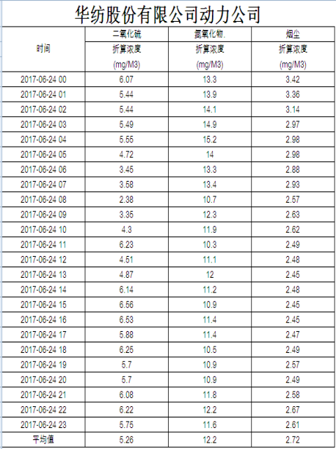 煙氣排放數據信息公開2017.6.24數據