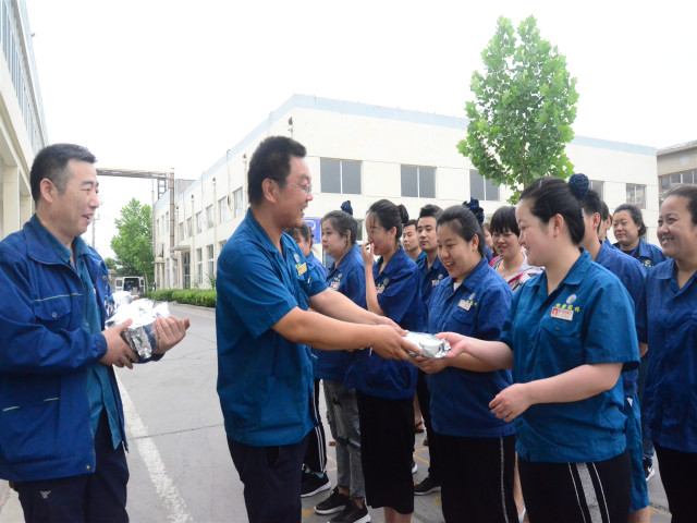 進入5月下旬以來,魯北地區氣溫逐漸升高,生產企業的防暑降溫工作提到了議事日程。公司為做好此項工作,采取多措并舉,在最大限度改善生產作業環境的同時,為員工發放夏季工裝等用品,加大向一線生產車間發送西紅柿湯、綠豆湯等降溫飲品,以確保高溫時節員工的體能需要和身心健康。